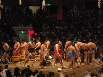 私は両親と一緒に国技館へお相撲を観に行きました。