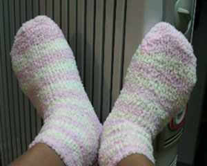 写真のモコモコ靴下、可愛いでしょ。