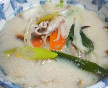 夜は ごま豆乳鍋。野菜たっぷり 豚バラでコラーゲンたっぷり!
