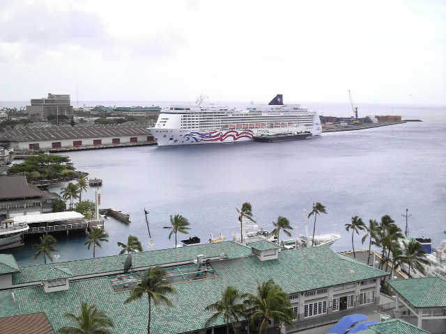 豪華客船のPride of Americaが見えます。