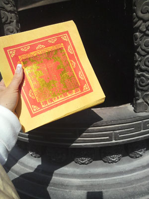 神様たちに捧げる金紙を炉に入れて燃やします。