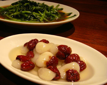 ほうれん草の和え物、レタス炒め、空芯菜炒め