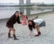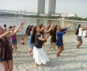 ビーチで踊るのは足がとられて本当に大変なの。