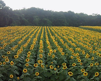 あたり一面の見事な向日葵です。すごかね〜。