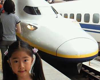 初めての新幹線に娘はワクワクです。